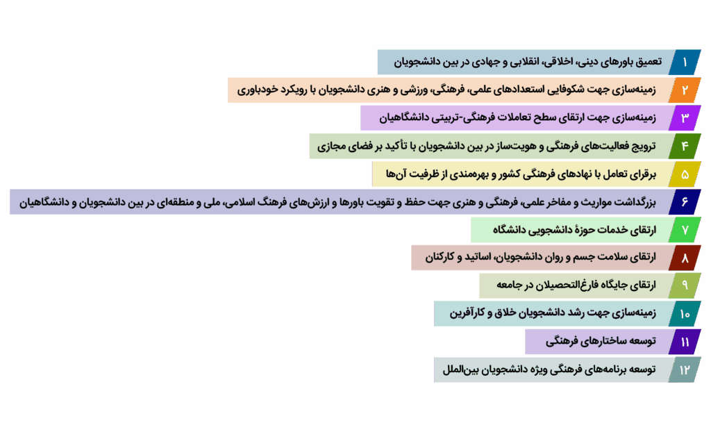 اهداف این معاونت در قالب دوازده عنوان کلی تعریف شده است که برای هرکدام از این اهداف، هدفهای جزئی متناسب تعیین شده است. اقدامات انجامشده در این معاونت متناسب با اهداف بوده و معاونت وظیفه پشتیبانی، هدایت، تسهیلگری و نظارت را بر عهده دارد.