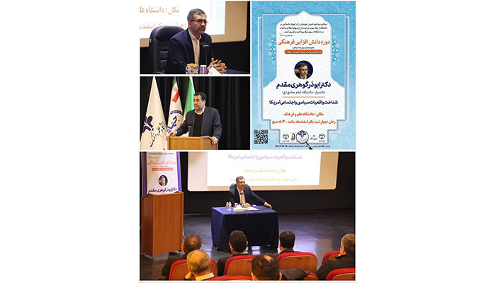 به گزارش روابط عمومی دانشگاه علم و فرهنگ، این دوره با معرفی سخنران و توضیح دوره توسط دکتر منوچهر جهانیان، معاون فرهنگی، اجتماعی و دانشجویی و سخنرانی دکتر ابوذر گوهریمقدم، دانشیار دانشگاه امام صادق(ع)، کارشناس حوزه سياست خارجي قدرتهاي بزرگ و نیز سياست در ايالاتمتحده آمريكا همراه بود که طی آن درخصوص موضوعاتی چون مکانیزمهای سیاست و حکمرانی در ایالت متحده، حدود اختیارات ریاست جمهوری در ساختار سیاسی ایالت متحده، عملکرد احزاب در این کشور، نظام سلطه و … بحث شد.