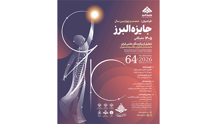 بنیاد فرهنگی البرز فراخوان شصت و چهارمین دوره جایزه البرز را در بخش نخبگان سراسر کشور منتشر کرد. دانشجویان میتوانند پس از مطالعه شیوهنامه مربوط و در صورت واجد شرایط بودن از تاریخ ۱۰ آذر ۱۴۰۴ به مدت یک ماه با مراجعه به نشانی www.alborzprize.ir در این رقابت ثبت نام کنند. شماره تماس ۰۹۰۲۲۴۳۹۸۵۴ در بنیاد البرز پاسخگوی سوالات احتمالی متقاضیان است.