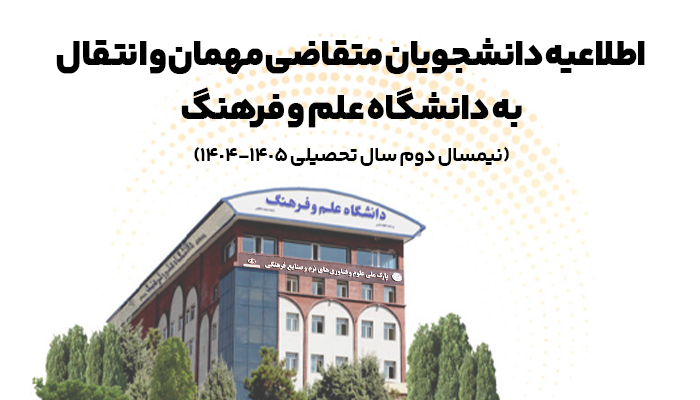 قابل توجه دانشجویان متقاضی مهمان و انتقال به دانشگاه علم و فرهنگ (نیمسال دوم سال تحصیلی 1405-1404)
